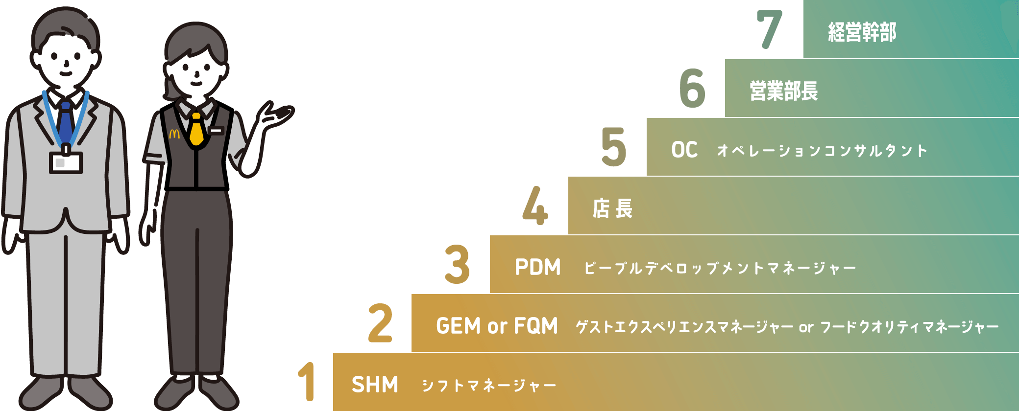 マクドナルドブランドに、年齢などにより決められたキャリアパスは存在しません。一人ひとりの職場でのチャレンジを積極的にサポートし、成長の機会を与えることが、優れたリーダーシップを育み、次世代を担う人材の育成につながると考えています。